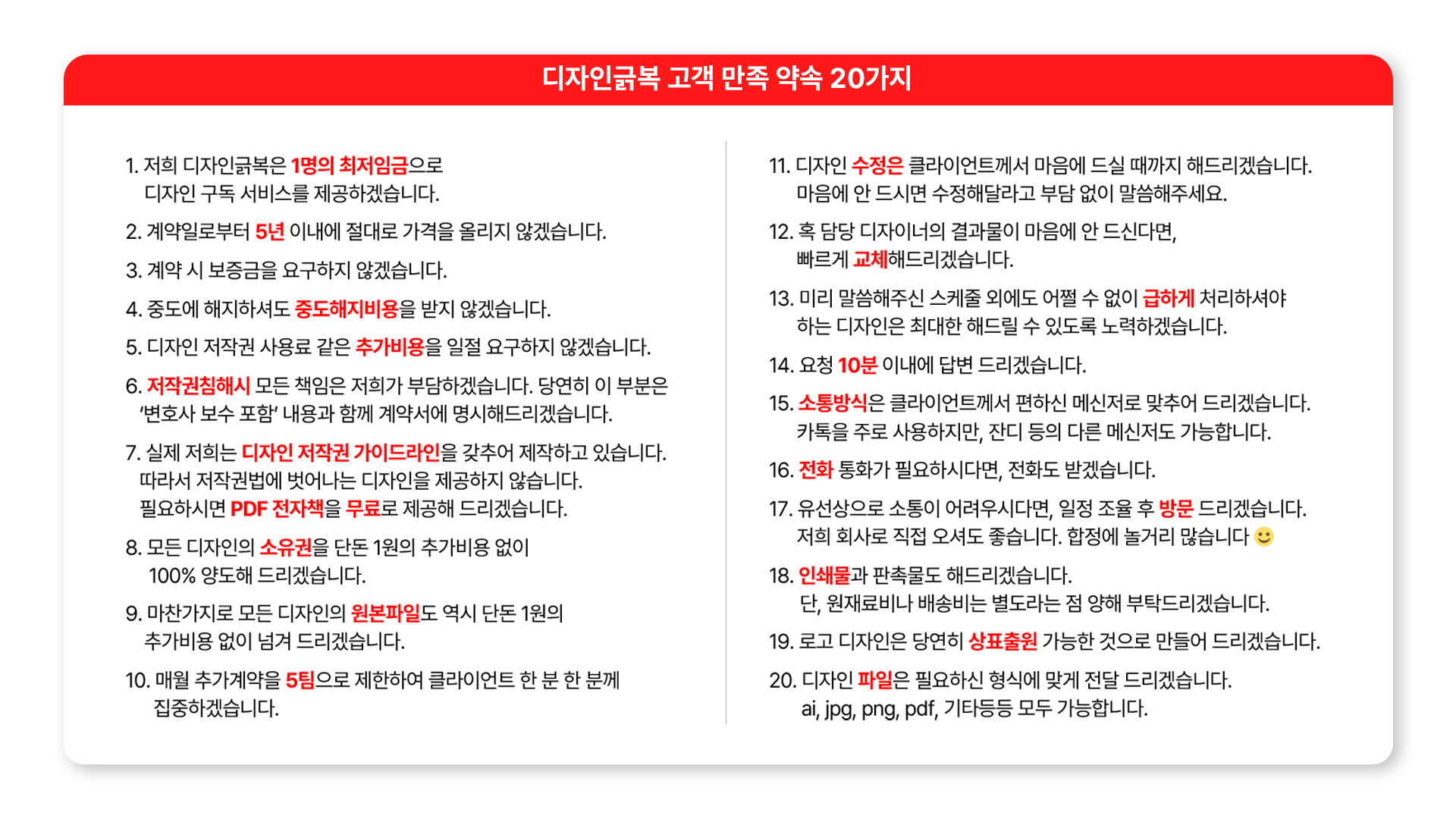 디자인긁복 고객 만족 약속 20가지